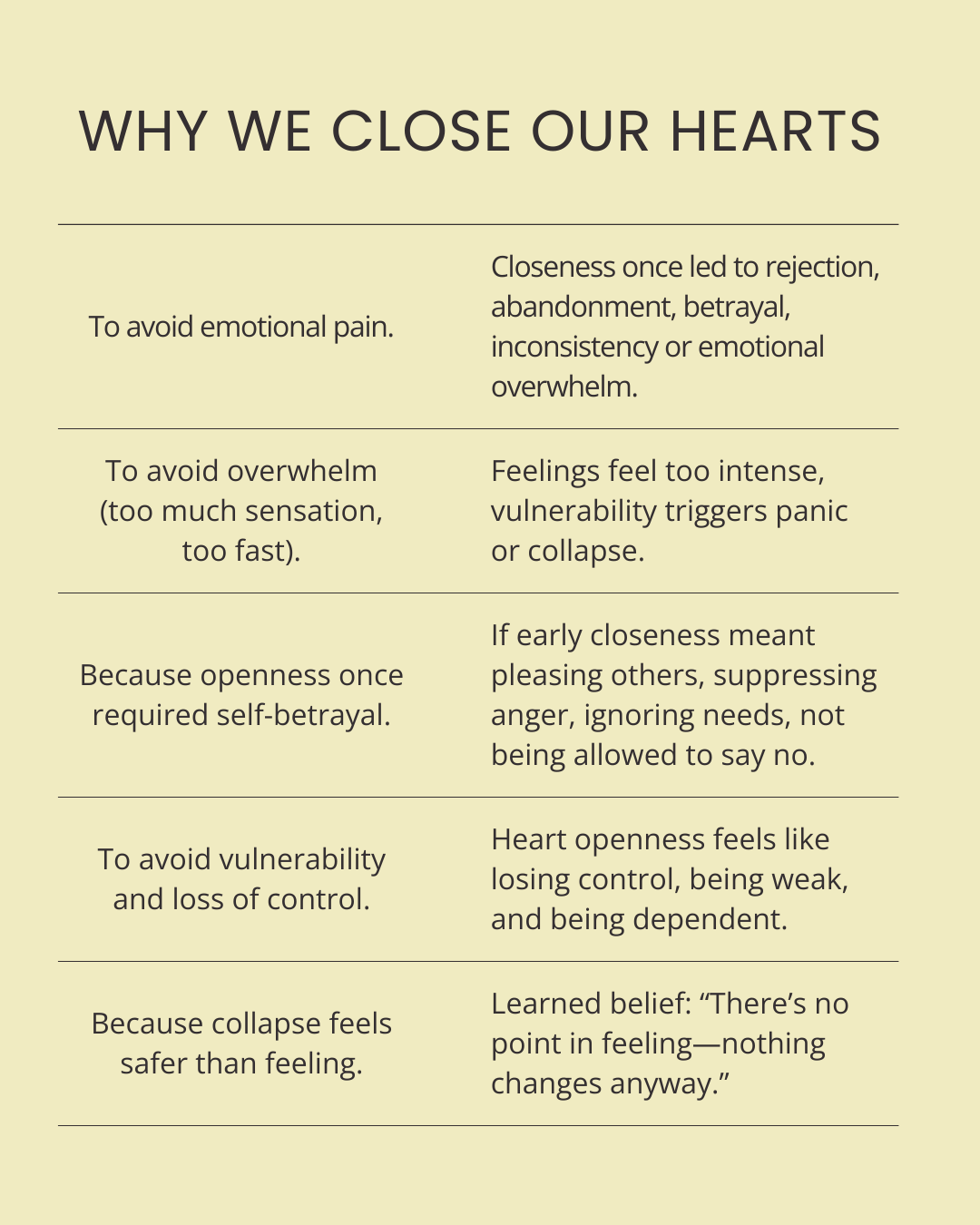 Heart closures are habitual tension patterns used to avoid pain (ie. when things are too much, we close). These patterns load up in our physical body - automatically.