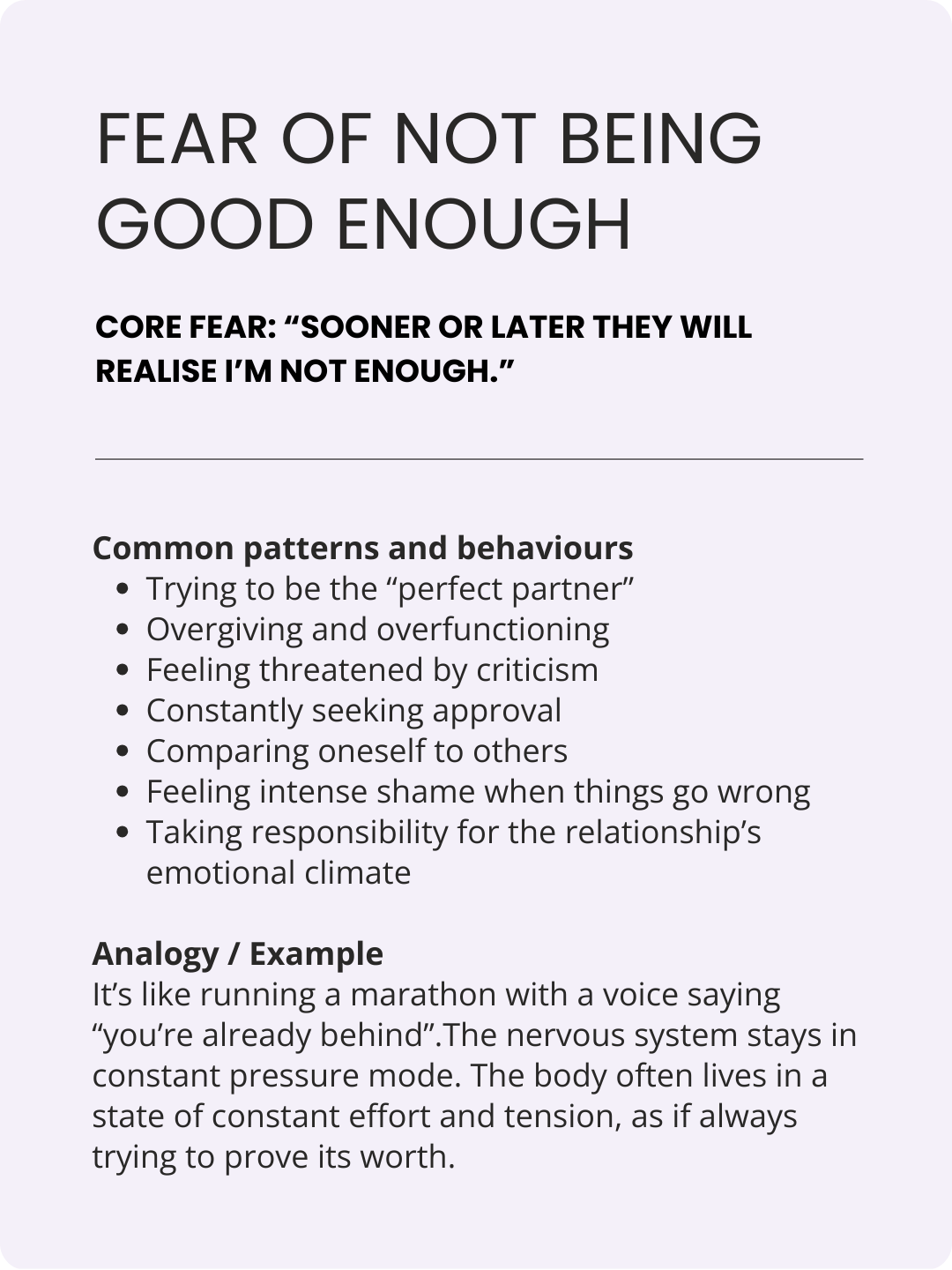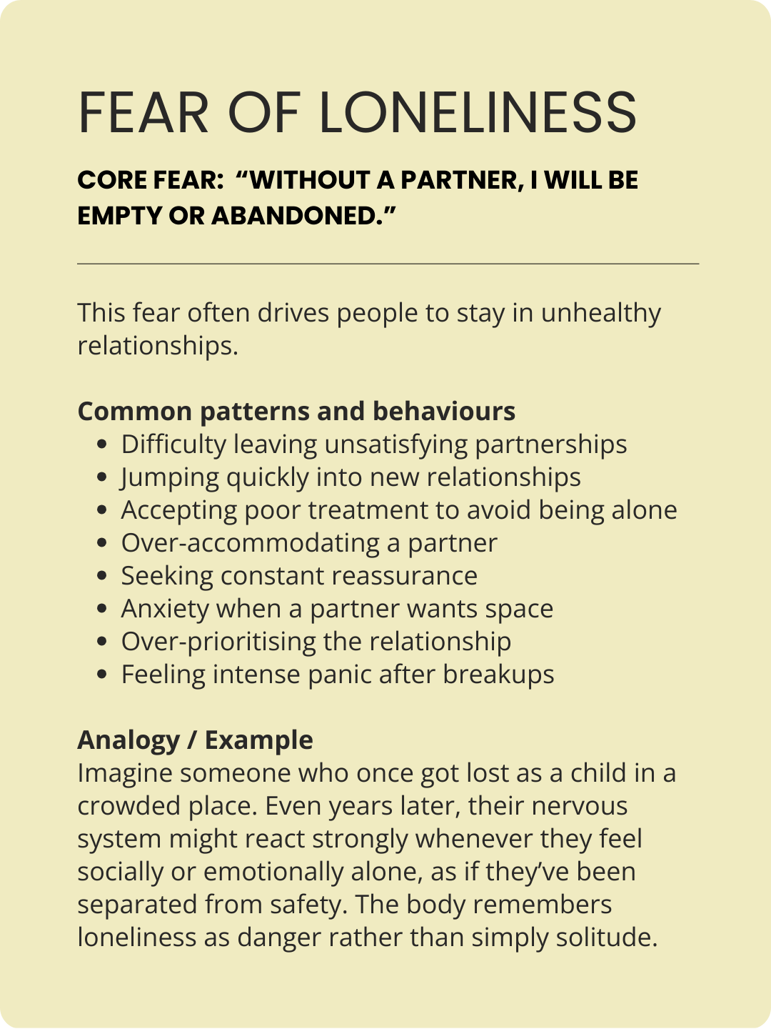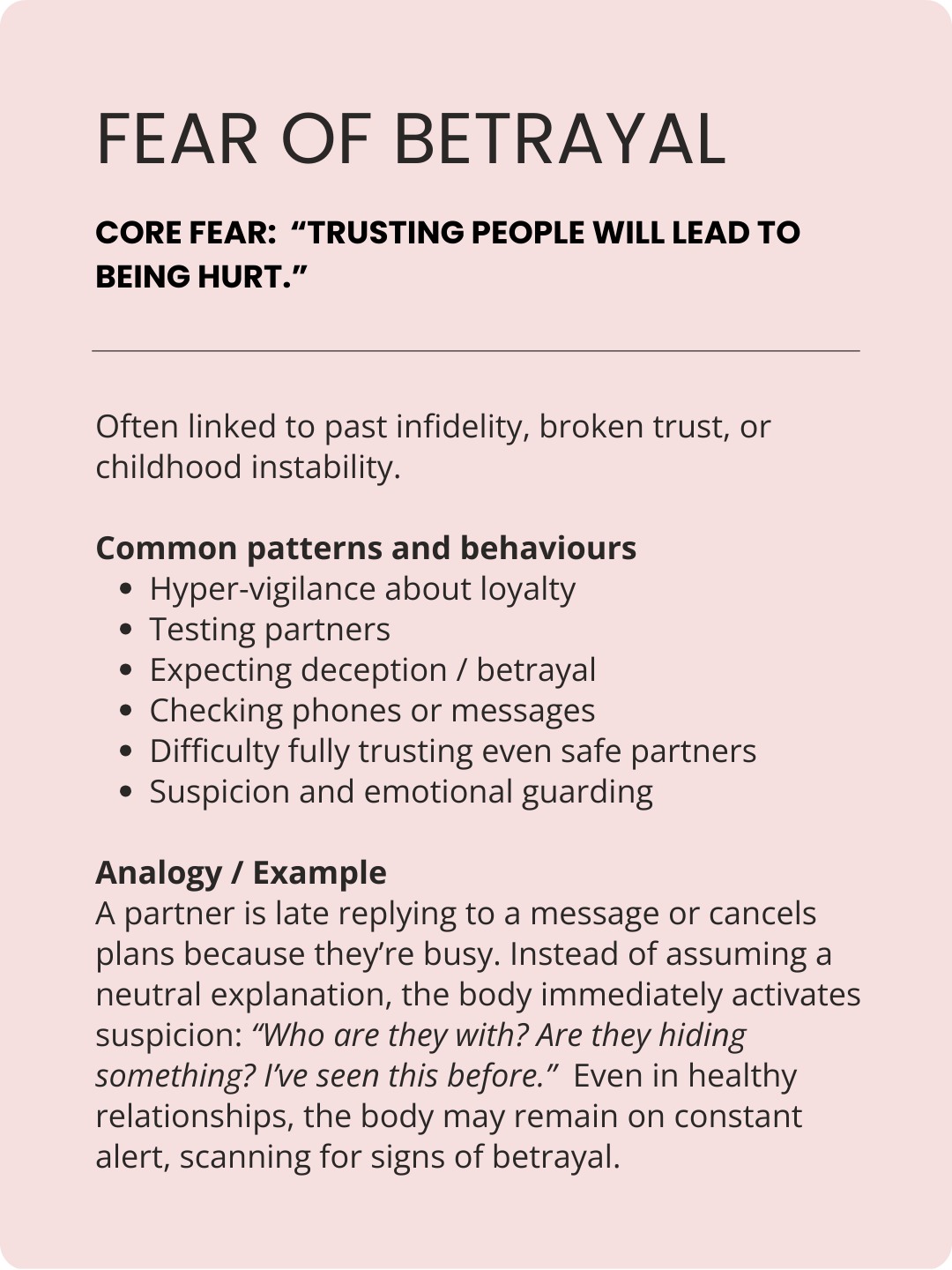 How you internalise (your body’s reaction) to your relationship fears is unique to you.